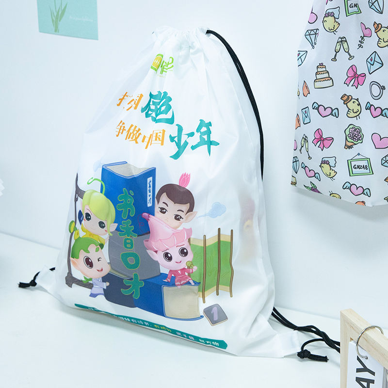 Cartoon Printing Eco-Friendly Polyester Shoulder Drawstring Bag Wholesale