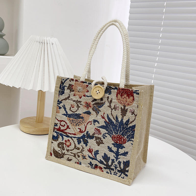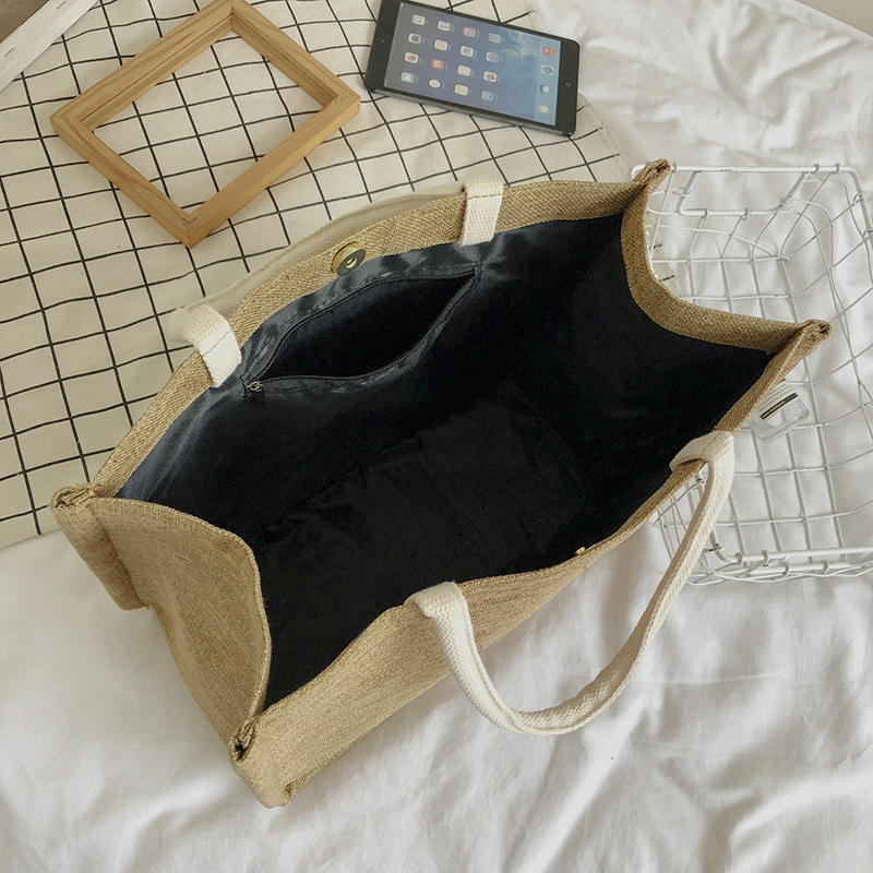 Spot Literary Leisure Stitching Jute Tote Bag Wholesale