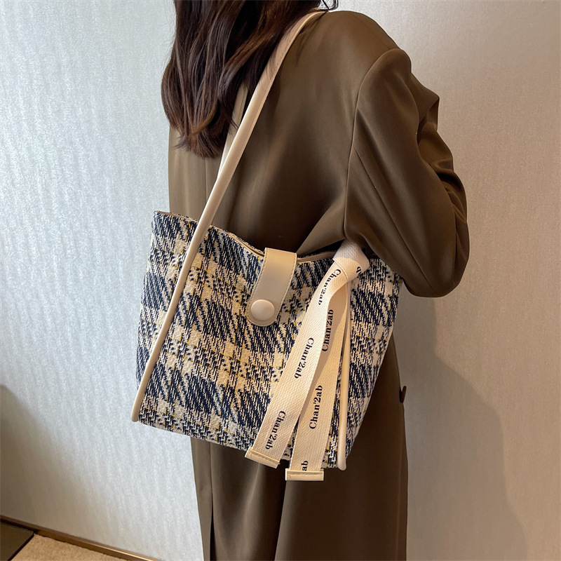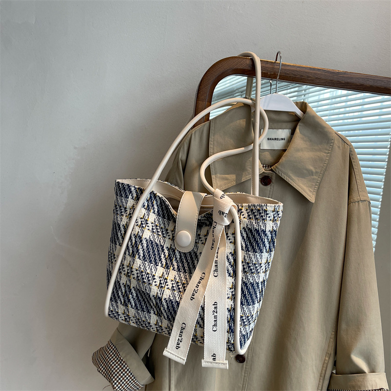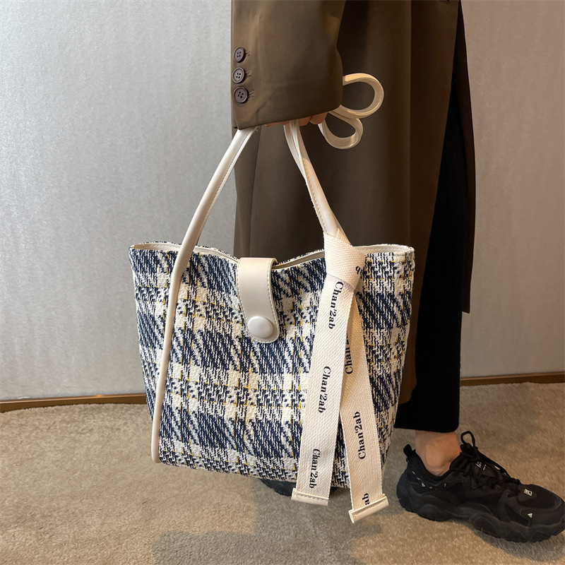 Home Products Canvas Bags Korean Style Large Plaid Canvas Tote Shopping Bag