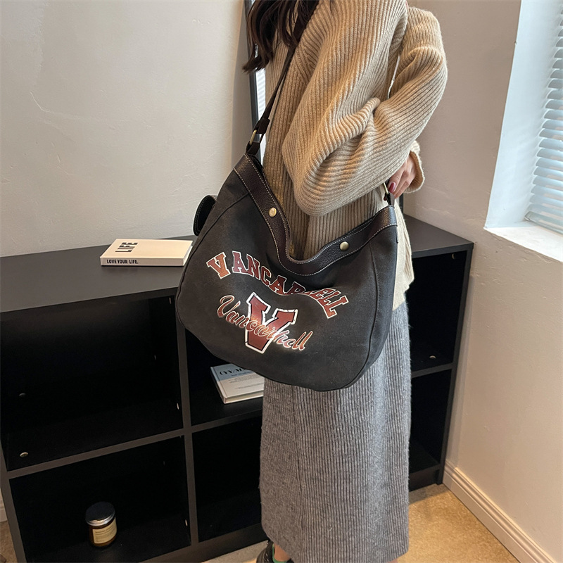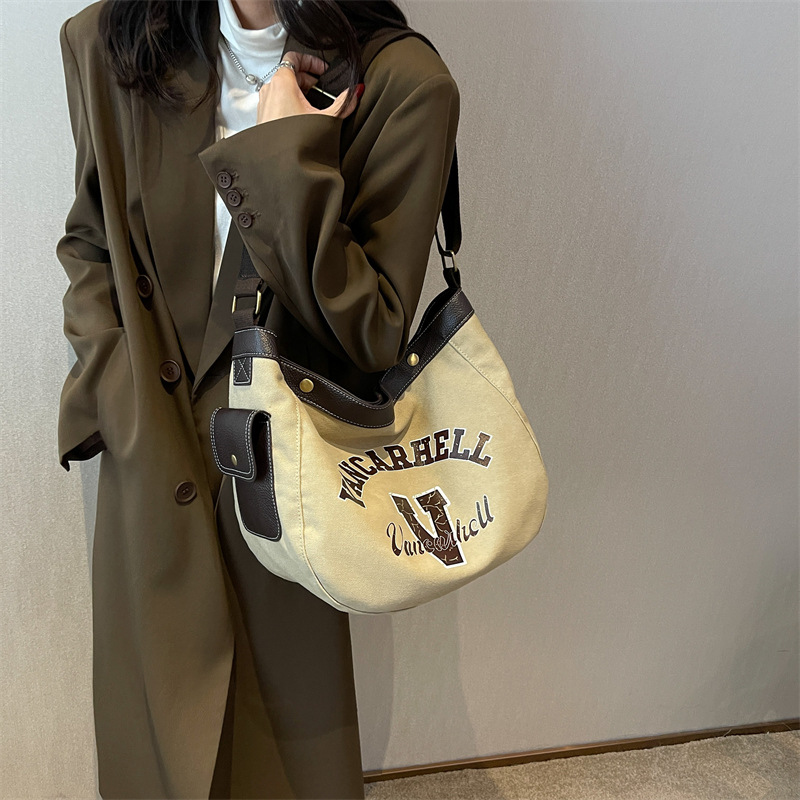 Home Products Canvas Bags Large Capacity Custom Logo Canvas Bag Retro Fashion Messenger Bag For Shopping