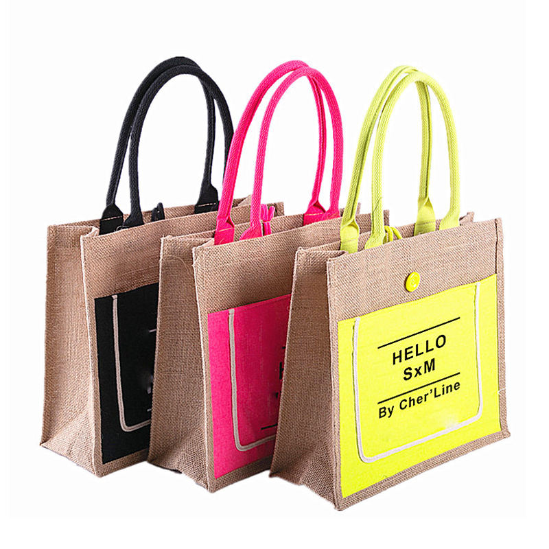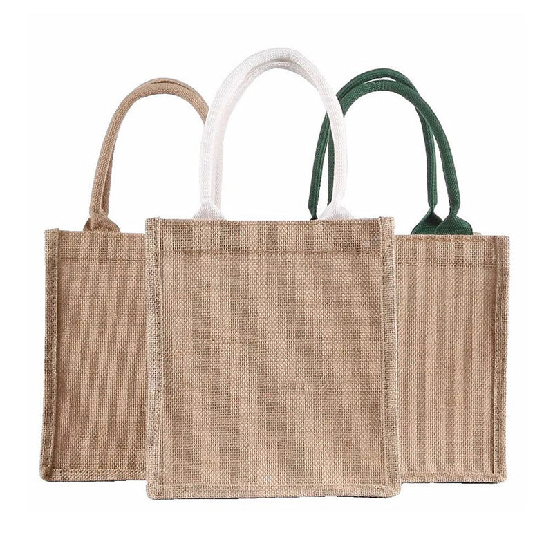 Home Products Jute Bags Literary Vintage Picnic Jute Canvas Tote Bag For Shopping